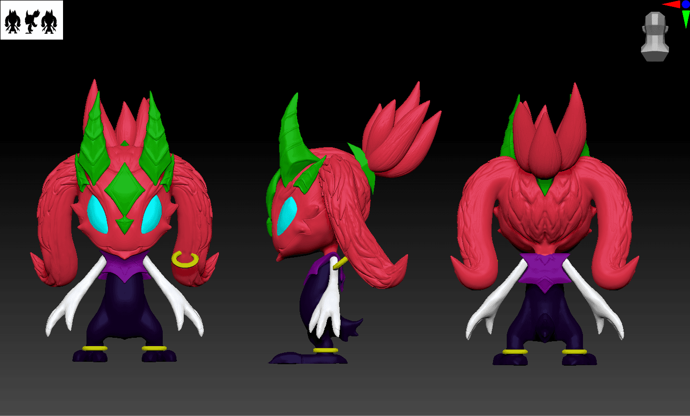This was the final project for the 3D Modeling for Games course, which taught the workflow of converting High Polygon models to Low Polygon for game integration. The assignment was to sculpt any character to be as close to the reference as possible. I chose "Little Devil Fizz" from League of Legends, a skin that I personally love.